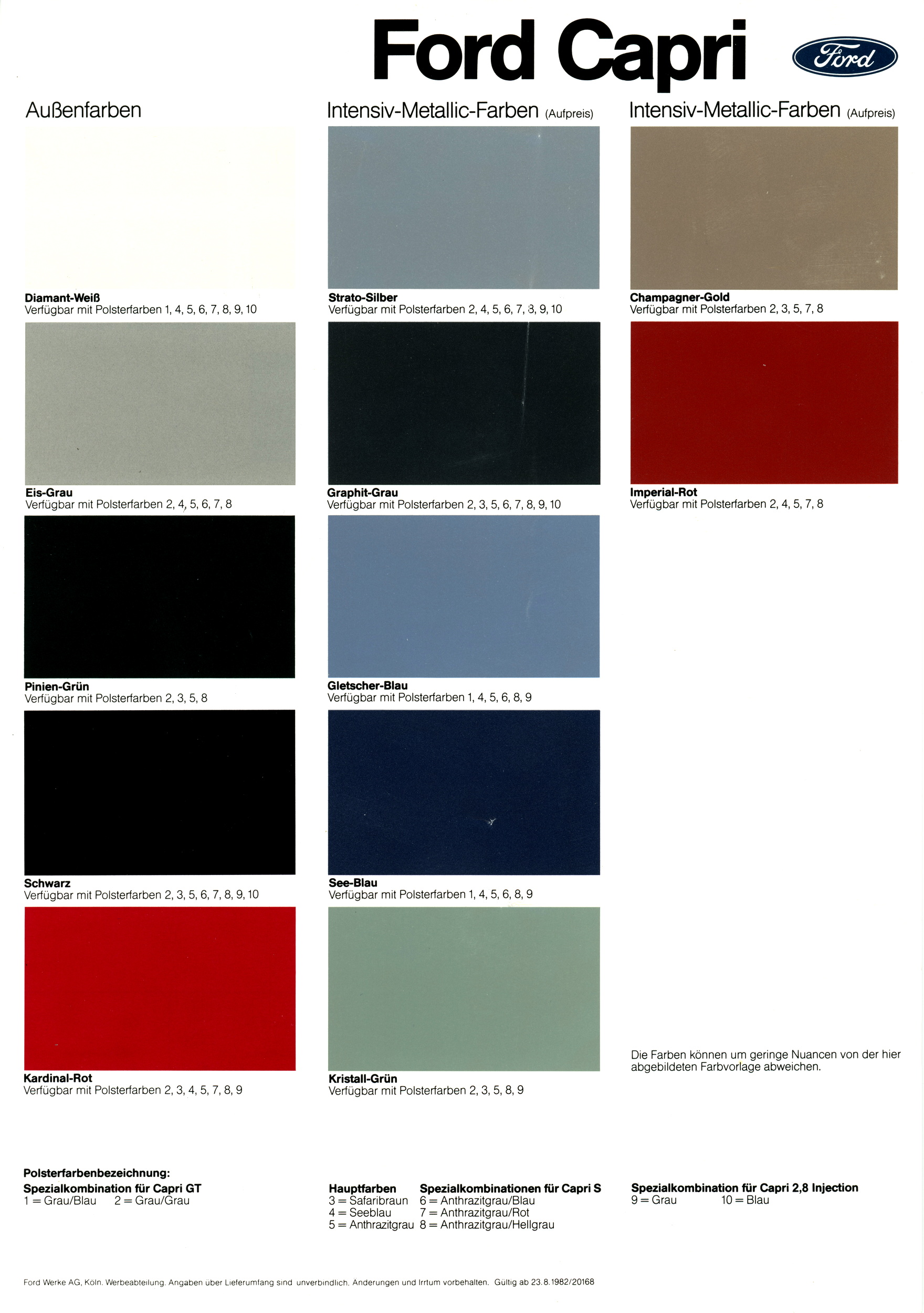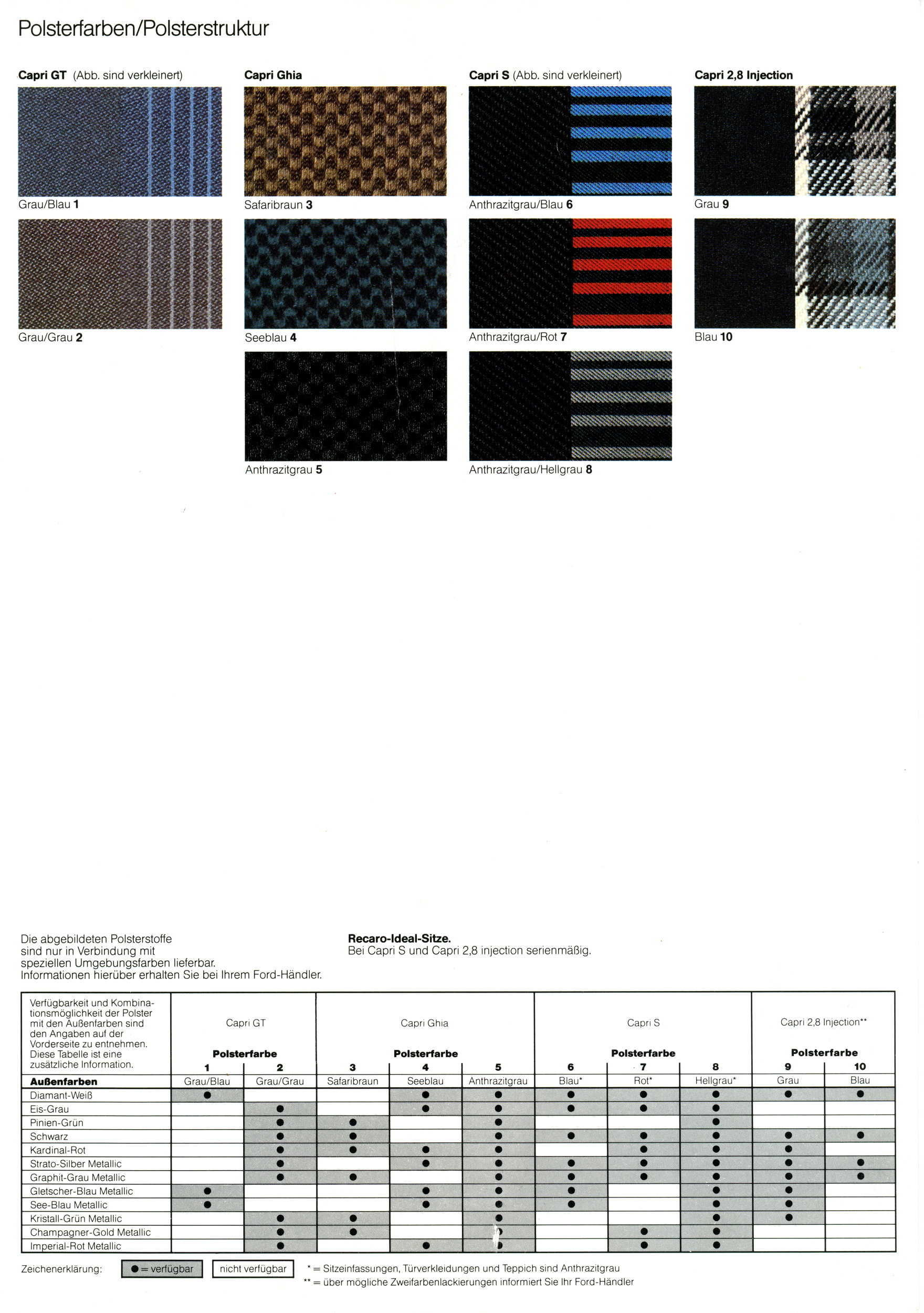 Spezial Polsterfarben für Capri 2.8i